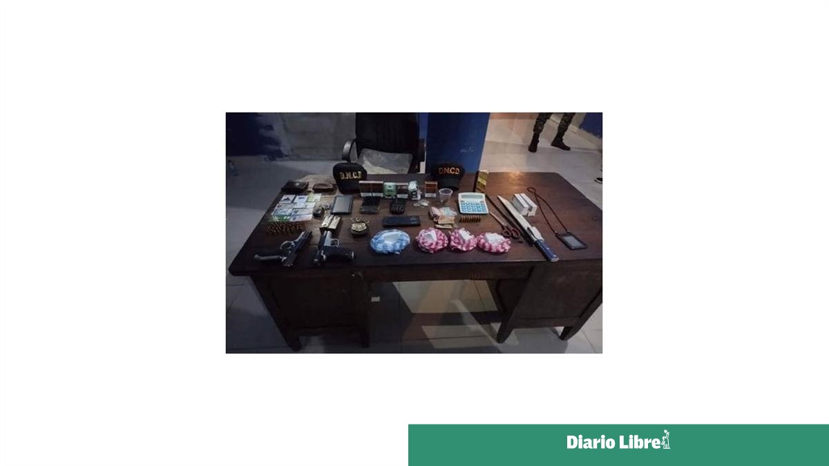 El vehículo al ser inspeccionado se halló en la gaveta cinco porciones de un polvo presumiblemente cocaína, con un peso aproximado de 413.1 gramos; 26 cápsulas calibre 9mm., seis casquillos disparados, una balanza y dos gorras de la DNCD.