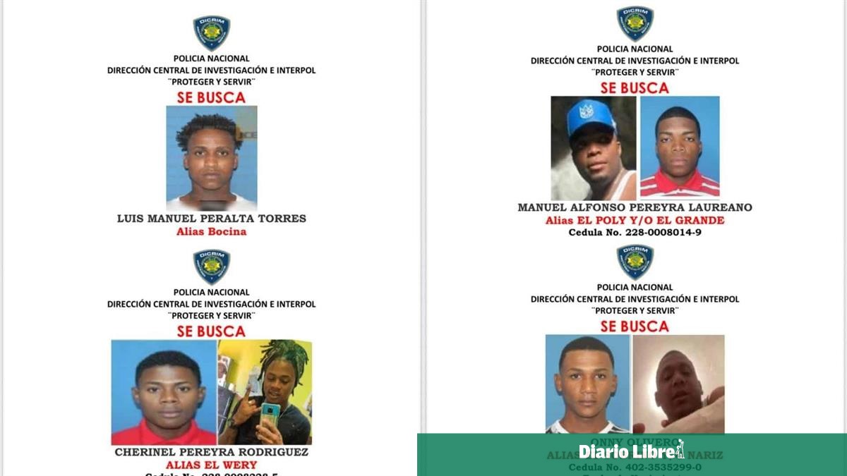 Los prófugos son Luis Manuel Peralta Torres, alias Bocina; Manuel Alfonso Pereyra Laureano, alias el Poly y/o el Grande; Onny Olivero, alias el Sobrino y/o Nariz, y Rafael Santana, alias Papucho