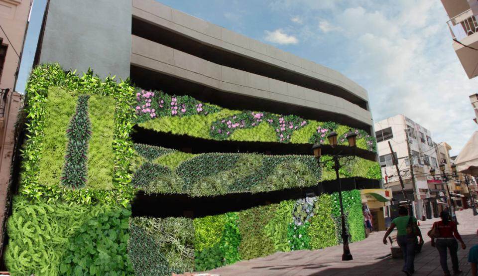 El Ayuntamiento del Distrito Nacional se unió a la onda de lo verde al iniciar los trabajos para la creación de un Jardín Tropical en la pared exterior del Parqueo Municipal de la calle José Reyes esquina El Conde, como parte de un plan de remozamiento para esta vía peatonal.