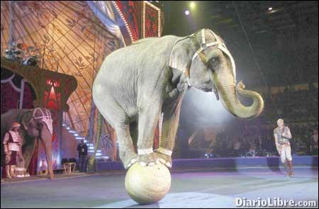 RUSIA. El domador de elefantes Andrey Dementjev-Kornilov consigue que un elefante se suba a una pelota, durante una gala de demostración del Festival Mundial del Circo, en Moscú. Acuden 140 artistas de 10 países. EFE
