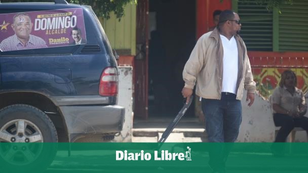 Los dos hombres, captados por el lente del fotógrafo de Diario Libre Aneudy Tavárez, se paseaban frente a la institución escolar, en donde funcionan las mesas electores 06-07-08-16-23 con un total de más de 1500 votantes.
