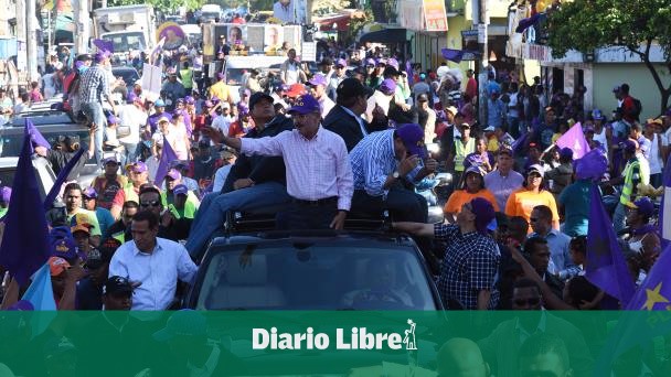 Mientras que los candidatos Reinaldo Pared Pérez (senador) y Roberto Salcedo (alcalde) desfilaron junto en otro vehículo cercano al presidente Medina.