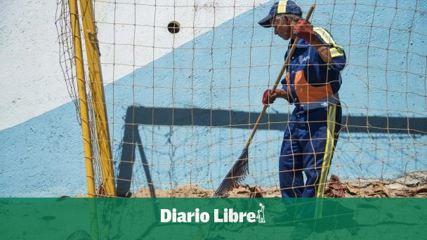 SANTO DOMINGO. Brigadas del Ayuntamiento del Distrito Nacional acondicionan la plaza Güibia para la realización de las actividades deportivas y recreativas que comenzarán a partir de mañana en el lugar.