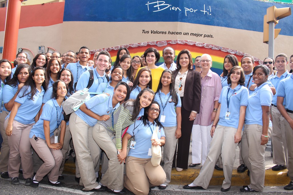 SANTO DOMINGO. La estrategia nacional Bien por ti de la Vicepresidencia de la República, el Centro León y la Fundación Propagas, presentaron el mural perimetral del Colegio Don Bosco de Santo Domingo, que combina la promoción de valores y protección del medioambiente.