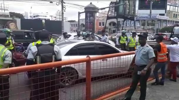 En la vía se reunieron decenas de agentes de Amet tratando de convencer al conductor, en el intento buscaron dos grúas para subir el vehículo y tras una media hora de negociación, accedió a que un sargento de Amet se montara en su carro y partieron al parecer a un cuartel policial.