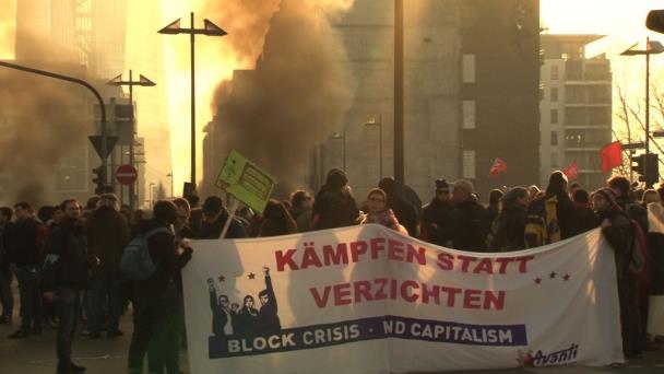 Los manifestantes protestan contra la entidad por su papel supervisor en los esfuerzos para moderar el gasto y reducir la deuda en países con problemas económicos como Grecia. La activista de Blockupy, Hannah Eberle, dijo que la "gente seguía decidida" a pesar de la fuerte presencia policial.
