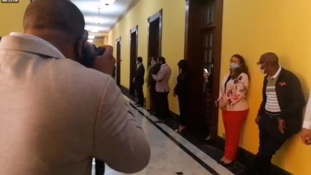 Mientras esto ocurre, un grupo de personas o próximos viceministros del Gobierno que encabezará Luis Abinader, a partir del 16 de agosto, están realizando un recorrido por el Palacio Nacional.