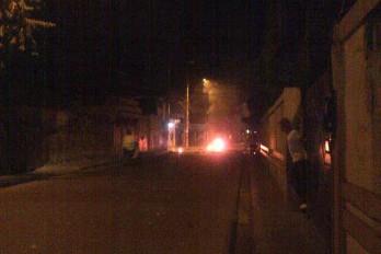 En la calle Rogelio Roselle, esquina Telésforo Jaime, jóvenes quemaron neumáticos desde las 8:00 de la noche, lo que era respondido por agentes policiales con bombas lacrimógenas.