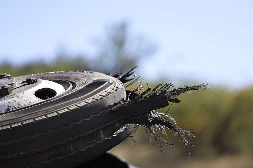 Al autobús ficha 19 se le reventó un neumático cuando circulaba a alta velocidad. En imágenes tomadas por Diario Libre en el lugar se observan las gomas desgastadas.