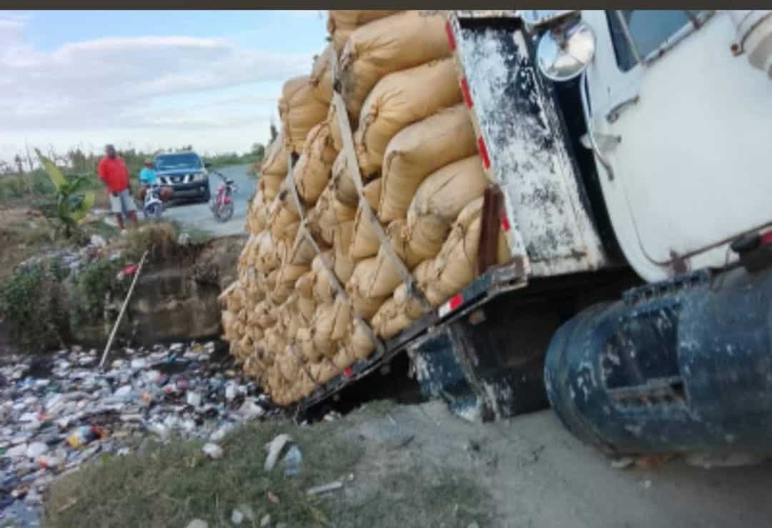 Un puente colapsó en la comunidad Las Cabuyas, en La Vega, justo cuando un camión cargado de arroz lo atravesaba, provocando que el vehículo se hundiera junto a gran parte de la mercancía.