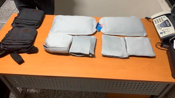 Los agentes antinarcóticos, efectivos y unidades caninas, destacados en la terminal, realizaban labores de inspección cuando detectaron dentro de un equipaje, una mochila y dos carteras, en cuyo interior se ocuparon (en doble fondo) las láminas de la sustancia.
