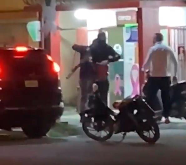 La Policía dice que trabaja en identificar y capturar a los asaltantes que, según un video abandonaron el establecimiento, luego de darle un pecozón a un hombre, en una yipeta roja.