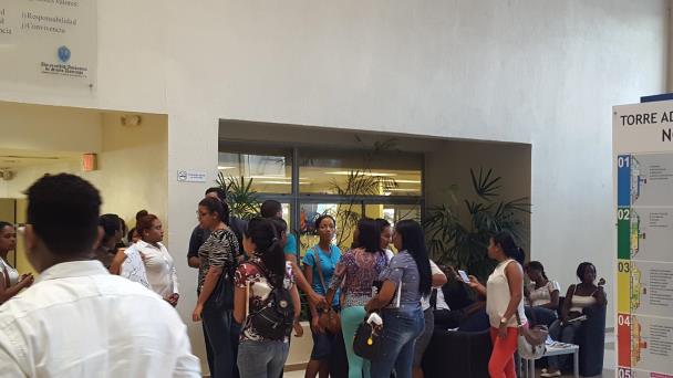SANTO DOMINGO. Un grupo de estudiantes de término de la carrera de medicina protestaron la mañana de este viernes dentro del edificio administrativo de la Universidad Autónoma de Santo Domingo, exigiendo que les permitan depositar expedientes para poder graduarse.