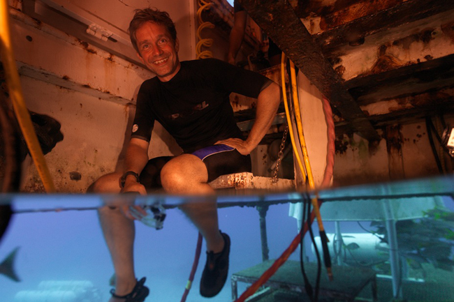 Un equipo de camarógrafos e investigadores se sumergió junto con Cousteau el 1 de junio al laboratorio submarino Aquarius. A mitad de la misión, los investigadores de la UIF dejaron su lugar a los de la Northeastern, que volverán a la superficie el 2 de julio junto con Cousteau. Han estado estudiando los efectos del cambio climático y los contaminantes -como fertilizantes- en los arrecifes.