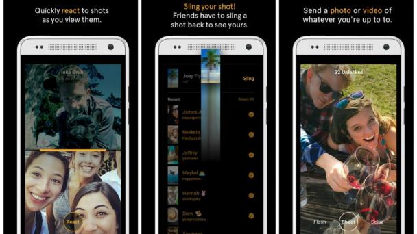 Slingshot permite enviar fotos y vídeos (de hasta 15 segundos), sobre los que se pueden escribir rótulos y realizar dibujos, a tantos contactos a la vez como el usuario desee.