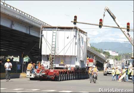 LOS ALCARRIZOS. El traslado de un transformador de 250 toneladas para el proyecto de la Autopista Eléctrica hacia la subestación Julio Sauri, ubicada en el municipio de Hato Damas de la provincia San Cristóbal provocó un extenso embotellamiento durante la mañana de ayer en la avenida Duarte, principalmente la entrada al municipio Los Alcarrizos y el distrito municipal Pantoja.