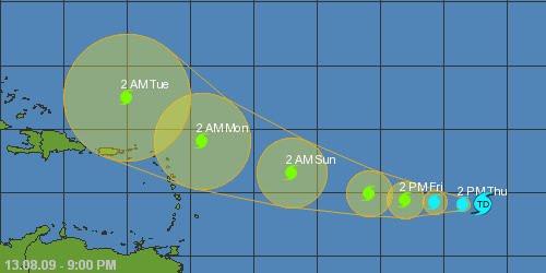 Los modelos de trayectoria presentan a la depresión aproximándose a la región del Caribe entre lunes y martes. Sin embargo, lo más preocupante es su mayor acercamiento al norte de Puerto Rico y de República Dominicana en comparación con las últimas estimaciones.
