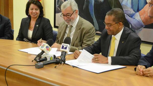 El acuerdo fue firmado por el rector de la UASD, Mateo Aquino Febrillet, y el presidente y miembro de Harvard, Brian D. Farrell.