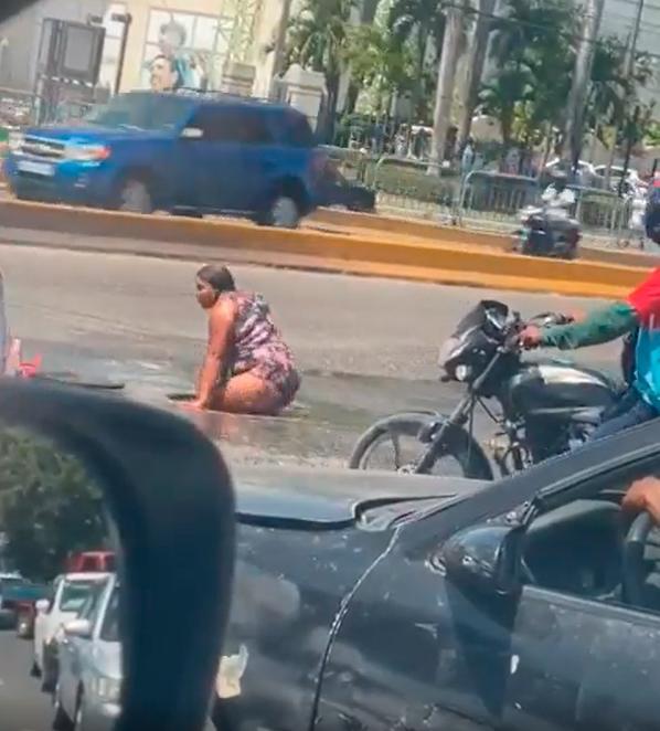 Circula en las redes sociales un video que muestra a una mujer, un niño y a un hombre sumergirse en un alcantarillado en plena vía pública en la avenida San Vicente de Paúl con carretera Mella, en el municipio Santo Domingo Este.