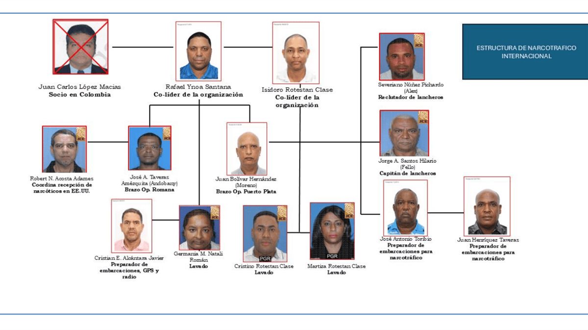 Las autoridades identificaron a los dominicanos Rafael Ynoa Santana, conocido como "el Cojo", "Pocho" y "el Don" e Isidoro Rotestan Clase, señalados como los cabecillas y establecieron que sus socios suramericanos eran el colombiano Juan Carlo López Macías (a) Sobrino o El Grande” y el venezolano identificado por los apodos el Calvo, Gyspi Al y/o Gasan.