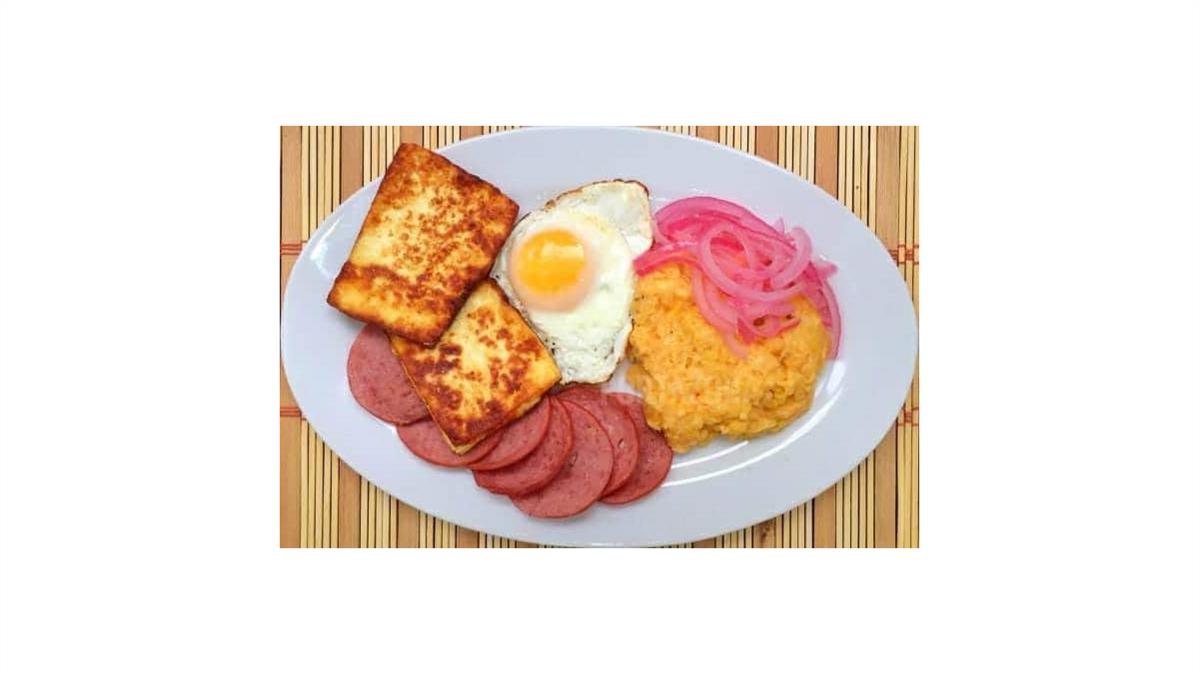 Este plato típico es uno de los más consumidos por los dominicanos y se suele acompañar con los tres golpes: huevo, queso y salami