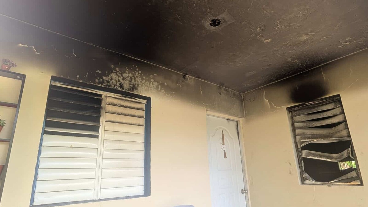 Imágenes captadas en el lugar muestran la vivienda con evidentes signos de incendio, incluyendo áreas afectadas por humo negro y daños provocados por las llamas.