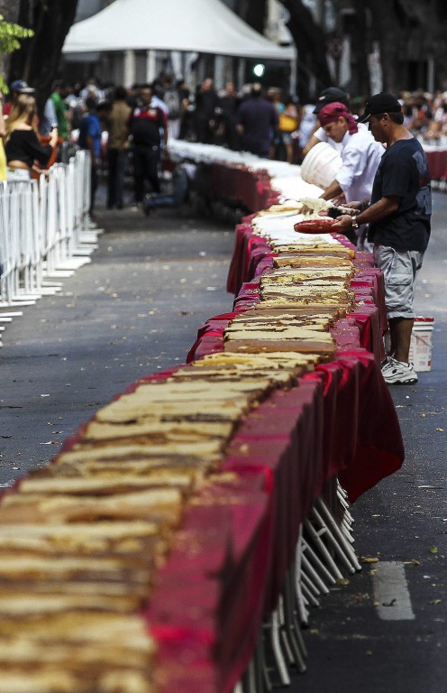 Para la preparación, un grupo de veinte personas utilizó 2,5 toneladas de harina de trigo, 1,5 tonelada de margarina, dos toneladas de azúcar, mil litros de leche, 50 kilos de fermento, mil litros de chantilly y 30.000 huevos.