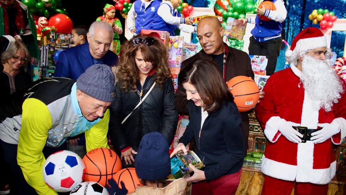Gobernadora Hochul, Rivera,Tavárez y Tallaj llevan magia de la navidad a niños latinos