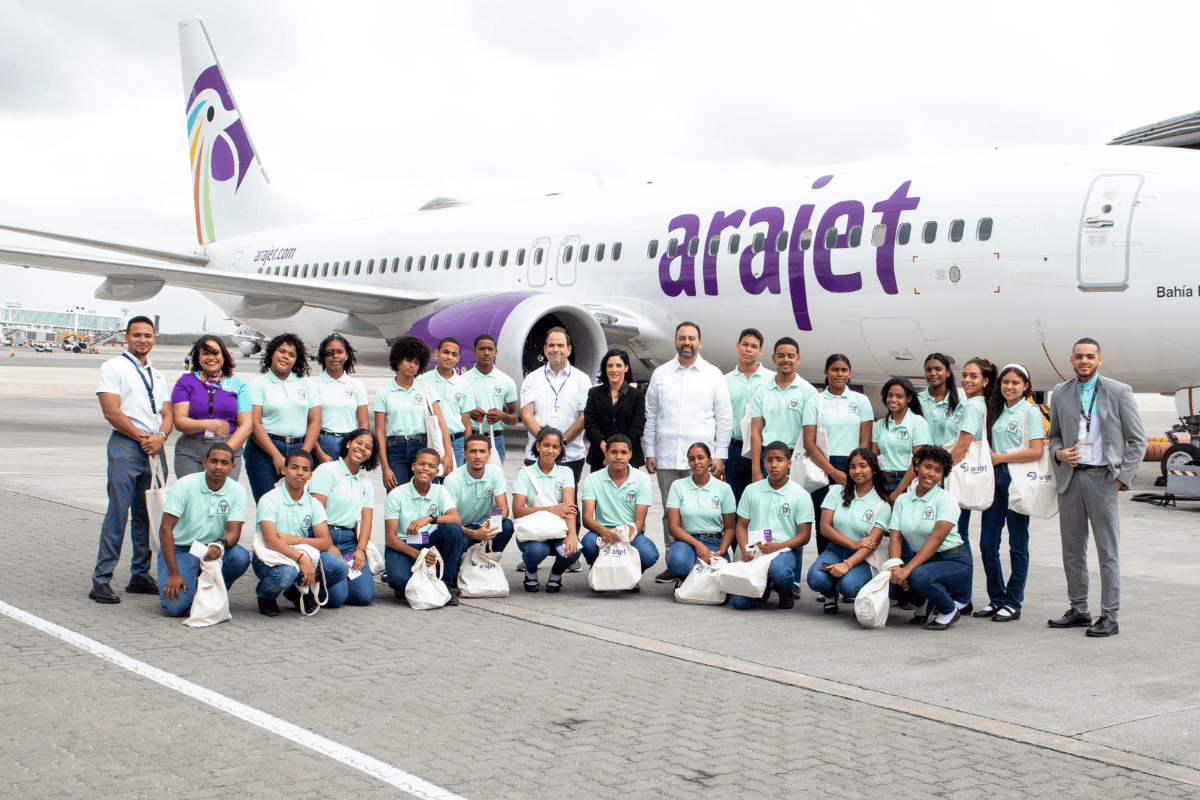 En esta edición, la compañía recibió a un grupo de adolescentes del Politécnico Ann & Ted Kheel, quienes tuvieron la oportunidad de vivir una experiencia en las operaciones de Arajet en el Aeropuerto de Punta Cana.
