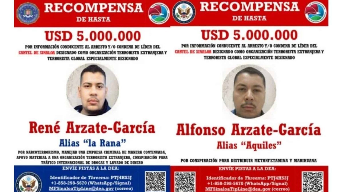 Los narcotraficantes buscados son René Arzate García, alias La Rana, y su hermano, Alfonso Arzate García, alias Aquiles, considerados capos de la plaza de Tijuana, en la frontera con Estados Unidos, para el Cartel de Sinaloa, catalogado como grupo terrorista por la Administración de Donald Trump.