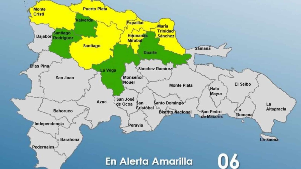 El Centro de Operaciones de Emergencia (COE) colocó este martes seis provincias en alerta amarilla y mantiene cuatro en verde, por posibles crecidas de ríos, arroyos y cañadas, así como inundaciones repentinas o urbanas.