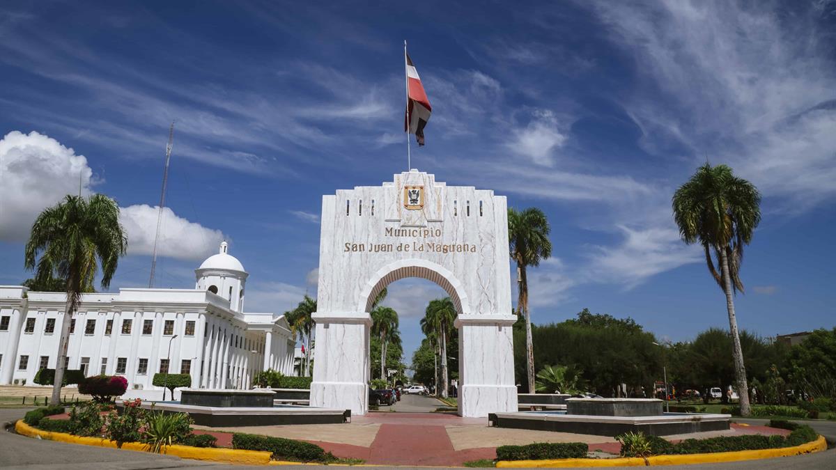 Esta figura, sostenida en dos anchos pilares, representa el progreso de la ciudad ya su alrededor se encuentran las principales instituciones gubernamentales y públicas del municipio, entre las que se destacan: el Ayuntamiento Municipal, el Palacio de Justicia, el parque Duarte, el hotel. Maguana y otros monumentos que son símbolos de identidad sanjuanera.