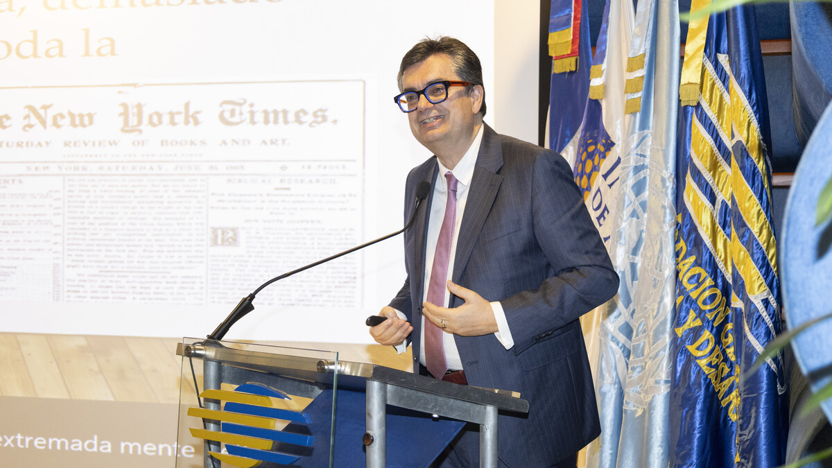 Barata dictó la conferencia “Libertad de expresión, grandes plataformas, regulación y moderación de contenidos” en el auditorio de la Fundación Global Democracia y Desarrollo (Funglode), con la presencia del expresidente de la República y presidente de la institución, Leonel Fernández.