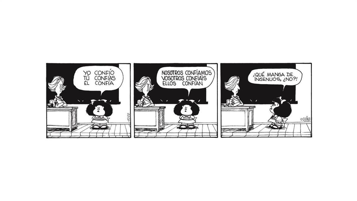 Un armario, aparador o mesilla de noche perfecta que, pese a que dejó de dibujarla hace 47 años, no pierde su vigencia, su frescura y su golpe certero. "Mafalda es eterna, la puedes revisar constantemente porque sigue de actualidad", destaca la editora de Lumen, que desde hace alrededor de dos años ha vuelto a recuperar las tiras de Mafalda y su pandilla de amigos.