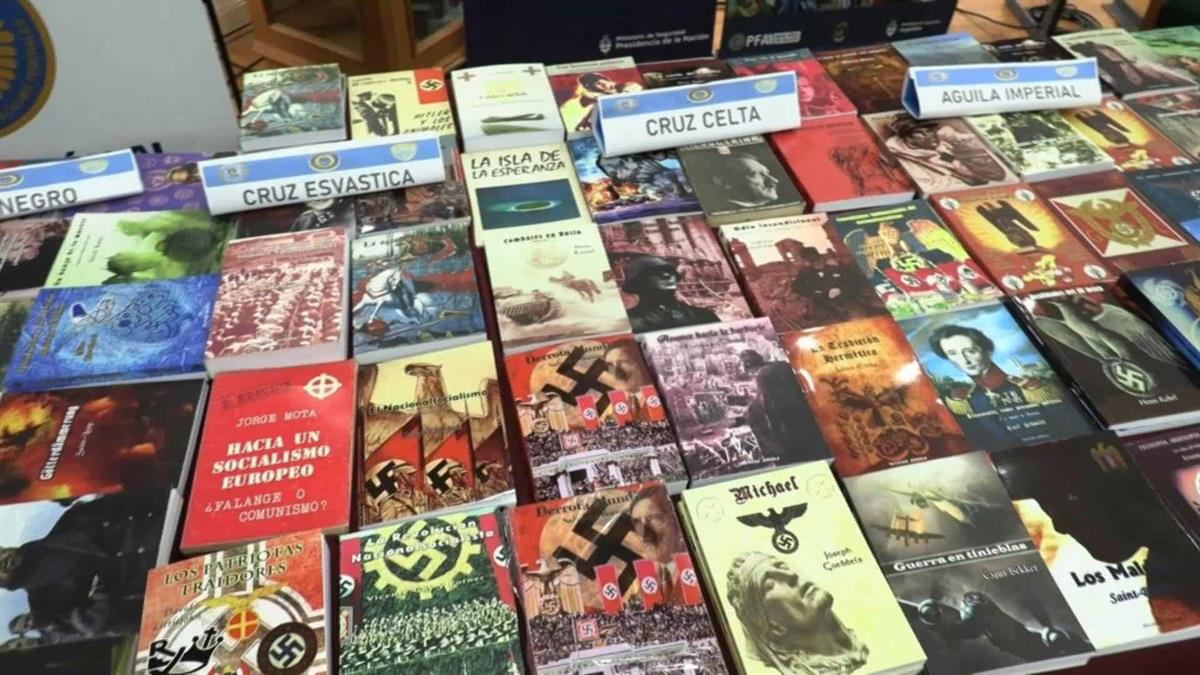 La policía argentina incautó más de 200 publicaciones y portadas de libros de orientación nazi en una imprenta irregular instalada en una vivienda de un suburbio de Buenos Aires y detuvo a su dueño