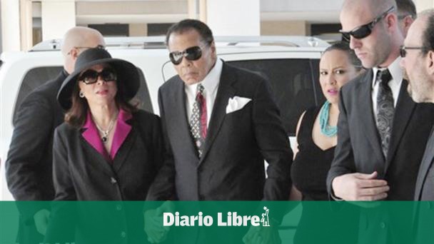 Muhammad Alí, al centro, y su esposa Lonnie, izquierda, a su llegada al funeral del legendario entrenador de boxeo Angelo Dundee, en el Centro Cristiano Countryside en Clearwater, Florida. Dundee entrenó a Alí.