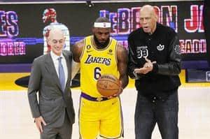 El primero en felicitar a LeBron fue el propio Abdul-Jabbar, que lucía este récord desde hace 39 años. El ex de los Lakers, presente en la Crypto.com Arena, entregó de forma simbólica un balón a LeBron y le indicó coronándole como el "número uno".