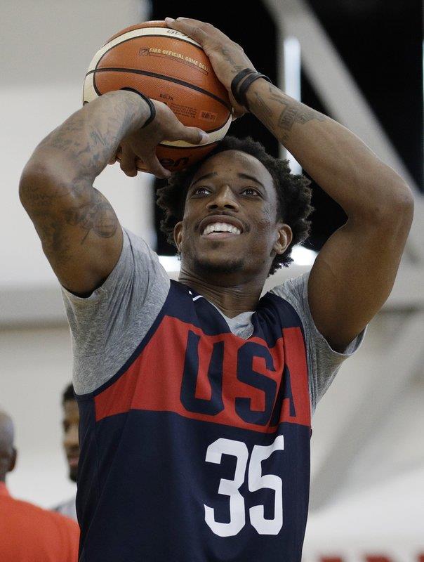 DeRozan está ahora con los Spurs de San Antonio y va a jugar bajo la tutela de Gregg Popovich, quien coincidentemente el jueves estaba dirigiendo la práctica inicial de la selección nacional por primera vez.