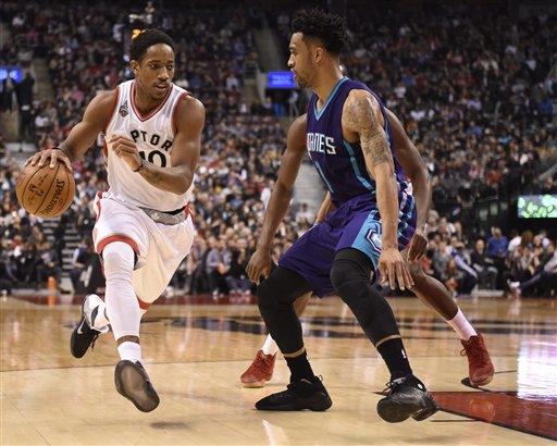 DeRozan anota 26, Raptors vencen 96-90 a Hornets