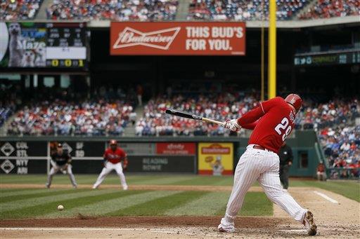Jeremy Hellickson (4-2) permitió dos careras y cinco hits, con cuatro ponches, en seis entradas por los Filis. El venezolano Jeanmar Gómez lanzó una novena perfecta para sumar su 16to rescate en 17 oportunidades.