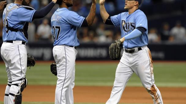 Luego que el dominicano Enny Romero trabajó un inning perfecto, el también dominicano Alex Colomé se encargó de los últimos cinco outs para el primer salvador de los Rays esta campaña.