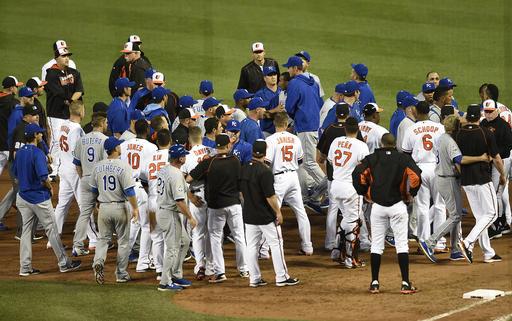 BALTIMORE. Los dominicanos Yordano Ventura y Manny Machado protagonizaron la noche de este martes una pelea durante el partido entre los Orioles y los Reales, en el estadio Oriole Park at Camden Yards.