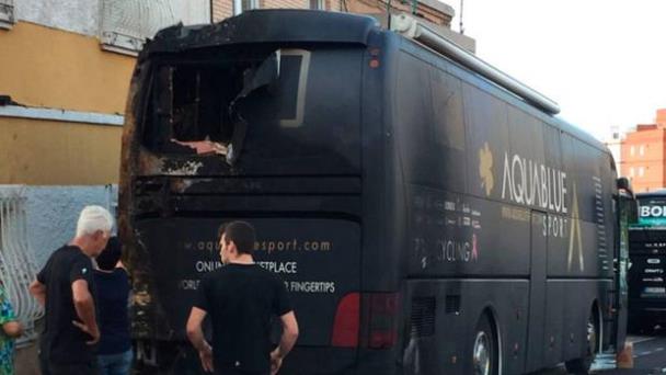 VIDEO | Un pirómano quema el autobús del equipo Aqua Blue Sport