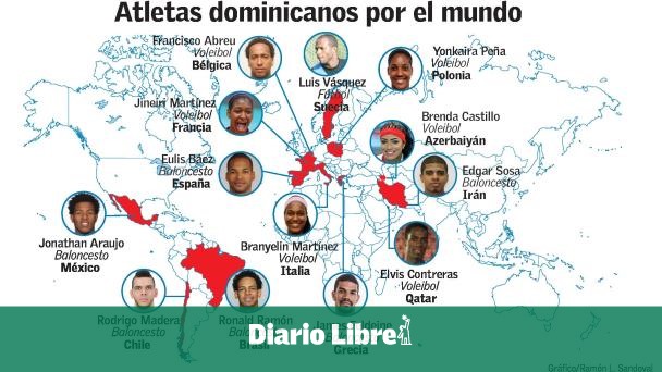 Pero Estrella y Santos son visitantes esporádicos de esos destinos. Otro núcleo de importante de atletas dominicanos buscan divisas a miles de kilómetros del Caribe, más allá de los peloteros, que mayormente concentrado en los Estados Unidos, México, Japón y Corea del Sur.