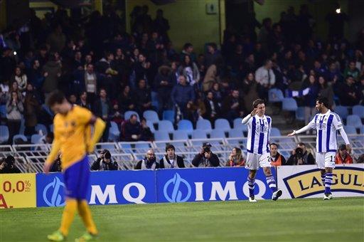 Aún apercibido de las victorias de sus más inmediatos perseguidores y de su propia racha negativa en Anoeta, donde no gana desde 2007, el Barsa no salió con su once gala y lo pagó caro, al encajar el gol de Oyarzábal a poco de iniciarse el encuentro, cuando el canterano cabeceó majestuosamente al poste opuesto un goloso centro de Xabi Prieto.