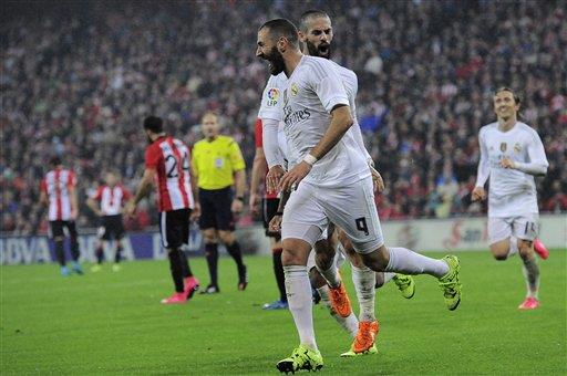 El Madrid cuenta 13 unidades tras vencer de visitante al Athletic de Bilbao por 2-1 con doblete de Karim Benzema, y figura primero en la tabla por mejor balance goleador sobre el “Submarino Amarillo” y el Celta.