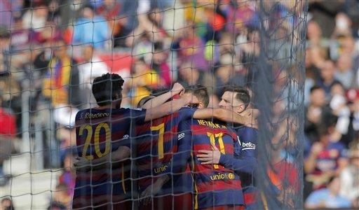 Los visitantes eran ya un juguete roto para el Barsa, inmisericorde líder con el tiránico Messi a la cabeza, reincidente en el escarnio, con otro pase interior a Neymar, sereno en el control y la definición rasa ante Guaita.