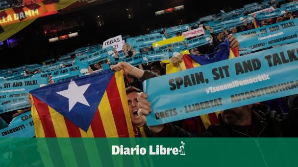 Junto a esas pequeñas pancartas individuales, otra grande con el mismo lema lució durante unos instantes en las gradas, al lado de una segunda con la leyenda “Freedom (libertad)”, en alusión a los nueve dirigentes independentistas condenados a prisión en octubre pasado por un intento de secesión en 2017.