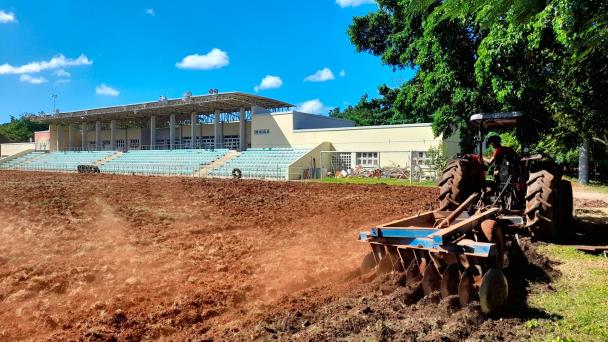 Los trabajos se iniciaron el jueves con un tractor removiendo la grama que fue instalada en el año 2003 cuando el país acogió los Juegos Panamericanos e invirtió RD$49,206,907 de entonces en la instalación de 11,267 metros cuadrados con capacidad para 1,500 espectadores cuando tenía gradas móviles. Actualmente puede acoger a 900 personas en butacas.