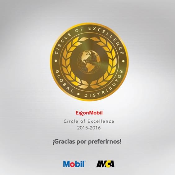 IMCA, distribuidor autorizado de lubricantes Mobil™ en República Dominicana, ha sido reconocido por ExxonMobil Fuels, Lubricants & Specialties Marketing Company con el prestigioso galardón de oro en el programa Círculo de la Excelencia 2015-2016, el más alto nivel de reconocimiento que esta empresa otorga a sus distribuidores alrededor del mundo.
